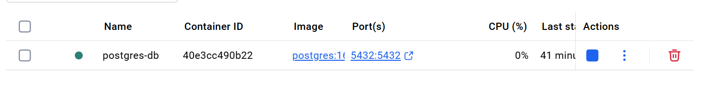 위 이미지처럼 postgres-db 컨테이너가 실행 중이라면 정상입니다.