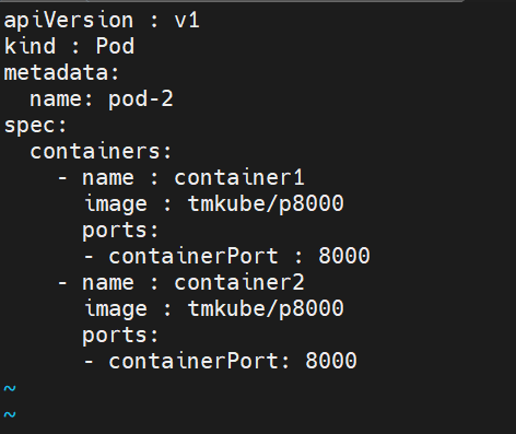 먼저 두 개의 컨테이너(8000번, 8080번 포트)를 가진 Pod를 만들어 봅시다.