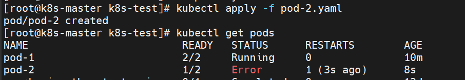 위 이미지에 표출되는 것처럼 pod-2가 Error가 발생했다는 Status를 확인할 수 있습니다.