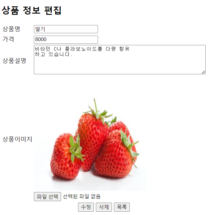 그럼 상세 페이지 폼에 데이터가 잘 나오는지 확인해 봅니다.