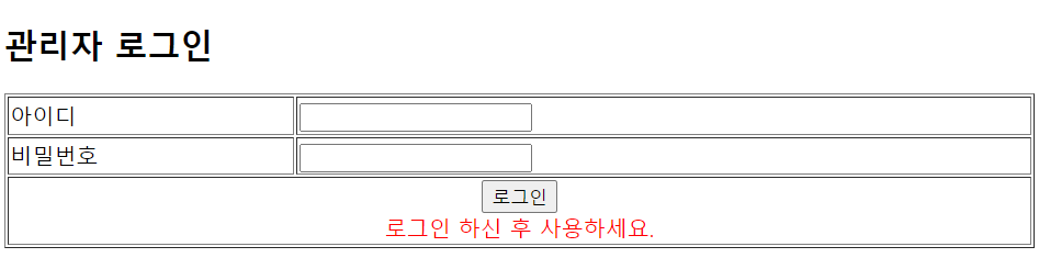 위 코드를 보면 ID가 NULL 이면 MAIN ACTION으로 넘어가지 않고 로그인 페이지로 넘어가면서 메시지로 안내해 줍니다.